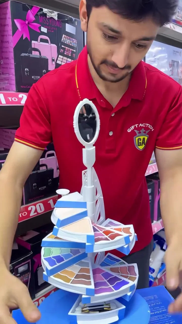 360° Rotating Tower Makeup Kit with Mirror – Multi-Layer All-in-One Palette with Eyeshadows, Blush, Compact & Brushes