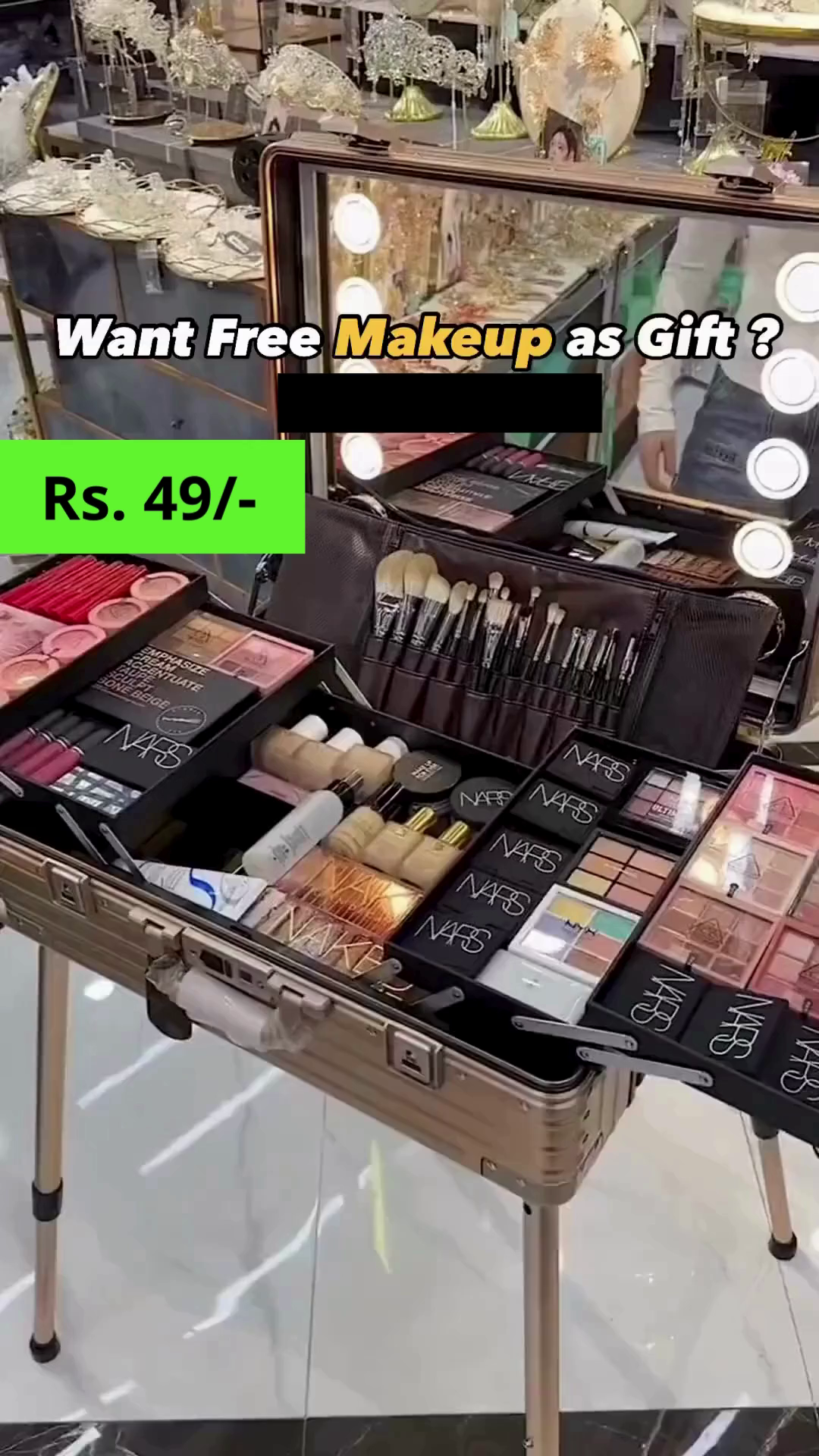 Complete Makeup Kit – Includes foundation, eyeshadow palettes, blush, highlighter, contour, and lip colors.