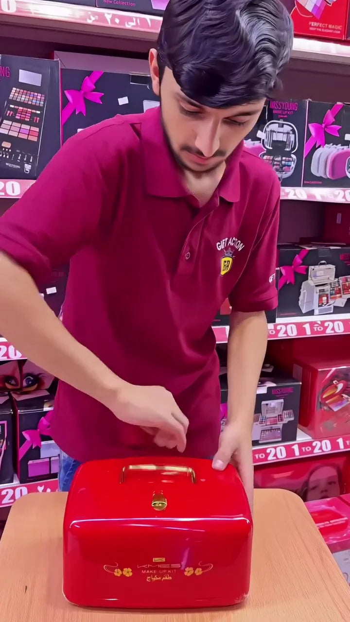 Design: Elegant multi-layered cosmetic box with organized compartments.
